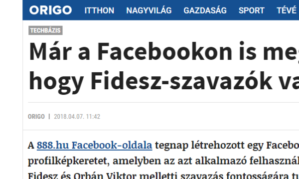 De most megszületett a Tech-rovat “Már a Facebookon is megmutathatjuk, hogy Fidesz-szavazók vagyunk” című cikke. Arról szól, hogy be lehet állítani a profilképünkhöz egy olyan keretet, amely kiírja, Fidesz – Orbánra szavazok.
